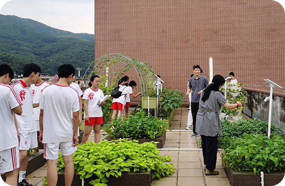 利用校園地面、樓宇天臺等空間,通過科學的規劃和管理,引入智慧農業技術和裝備,種植蔬菜、